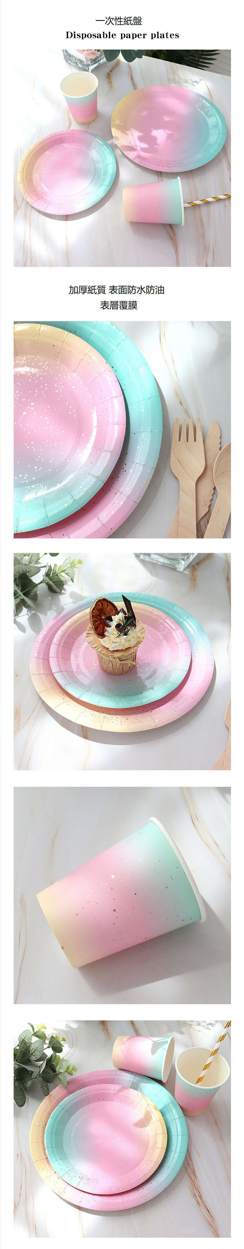 爆款【漸變彩虹】派對餐具 一次性生日紙杯 燙金彩虹紙杯(10個裝)