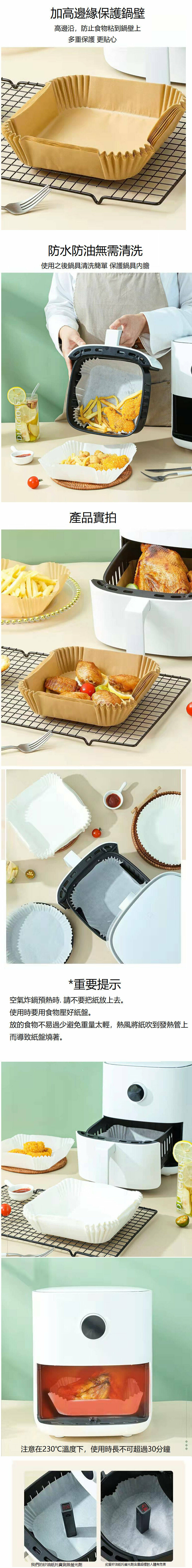 熱賣【本色50張】方形 空氣炸鍋紙 紙盤 紙托 吸油紙 食物墊紙烤箱氣炸鍋 一次性烘焙紙焗爐紙