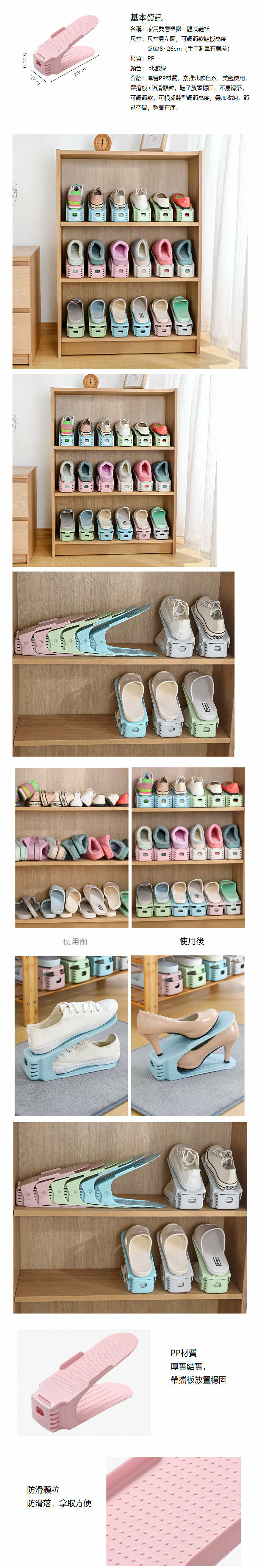 熱推【北歐綠色2個裝】多角度可調節 可調節式家用鞋櫃收納鞋架