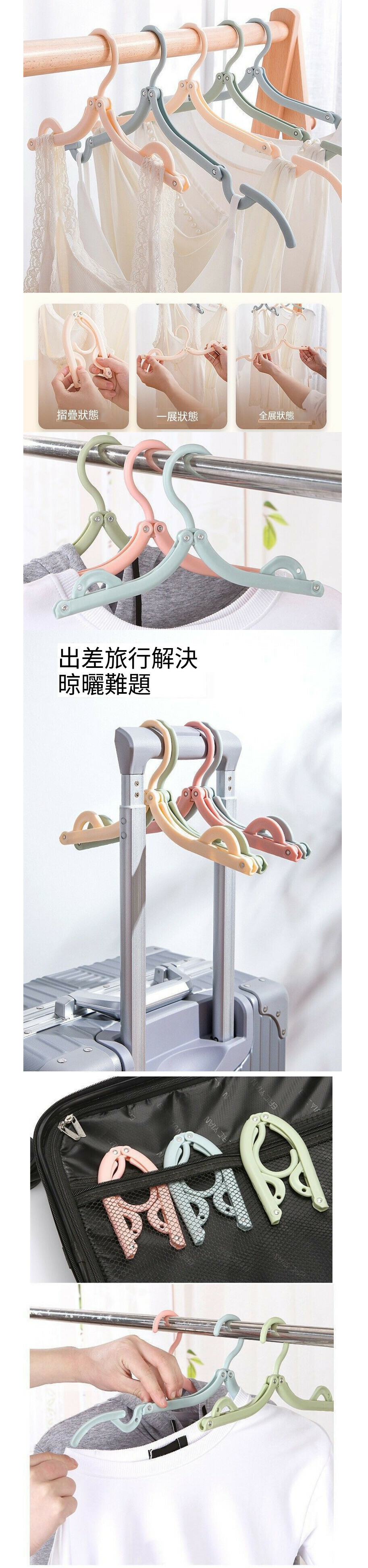 熱推【單個裝】多功能摺疊衣架(北歐粉色)
