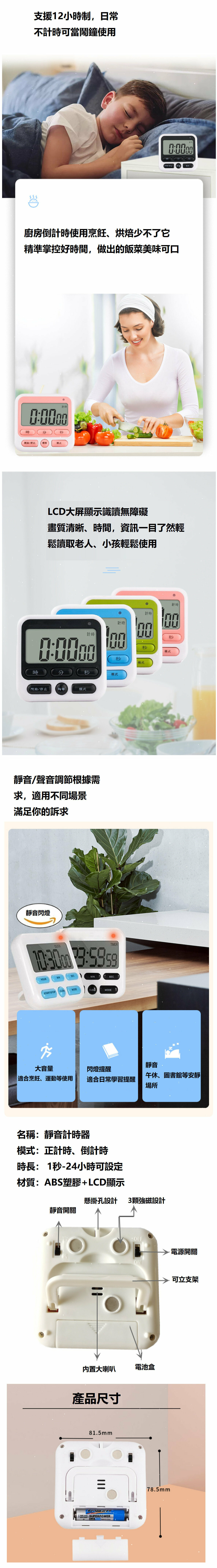 爆款【單個】廚房電子計時器 倒數計時定時 時鐘 鬧鐘 【規格英文黑色】【不包含電池】