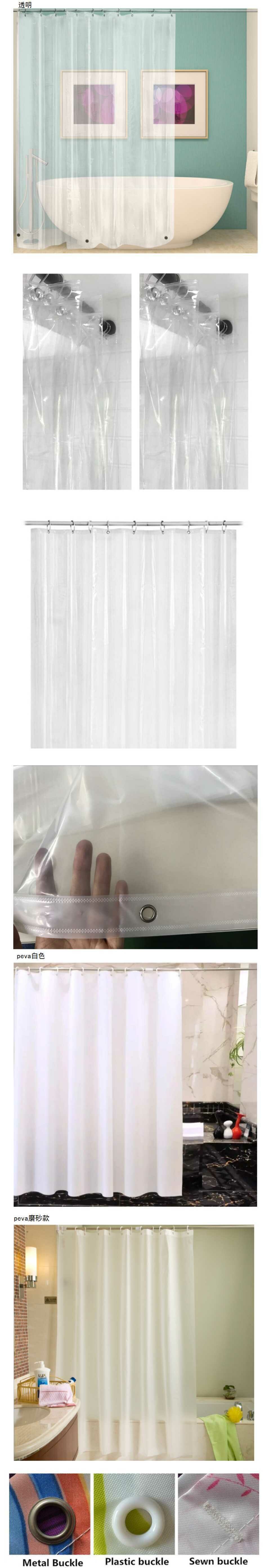 激抵【特價品】隱形浴簾內襯防水透明PEVA環保簾子 (白色12絲+不銹鋼扣眼+底部三個磁鐵) (180*180CM )(微瑕疵,介意勿拍)