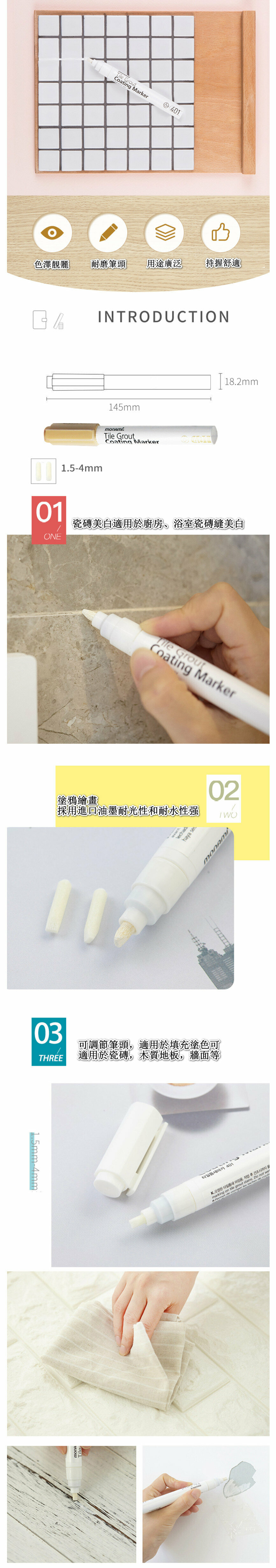 熱推【美白縫隙】簡單易用 防黴瓷磚美縫筆 (白色) (抗菌除黴│廁所│浴室│廚房│地板瓷磚│牆壁牆身│翻新│罅隙│遮瑕筆│美白筆│美縫劑│