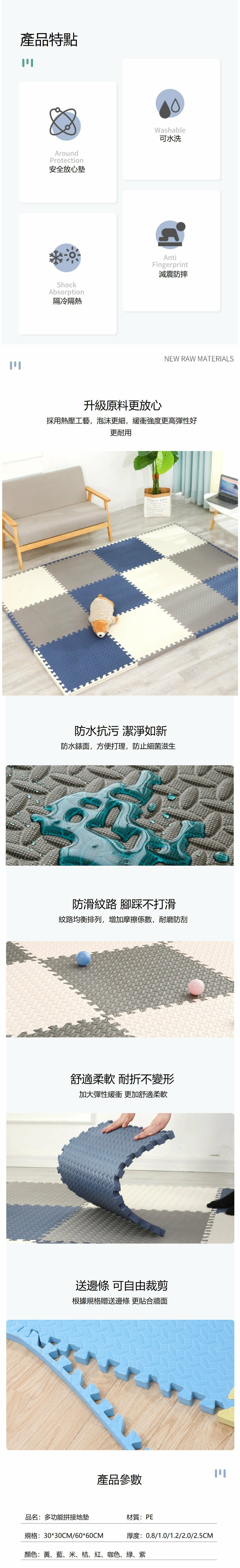 激抵【整片裝】多功能拼接兒童遊戲墊地氈(紫色 60*60*1.0cm 十字紋)