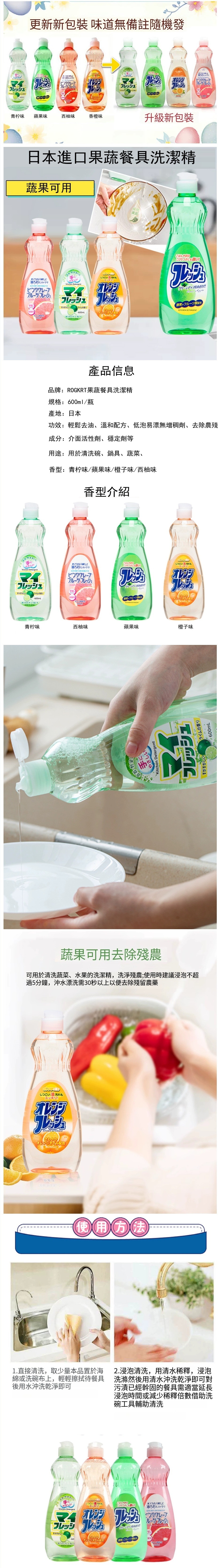 ロケット石鹸--果蔬洗潔精廚房餐具洗滌不傷手【低泡青檸味】600mlx1瓶裝
