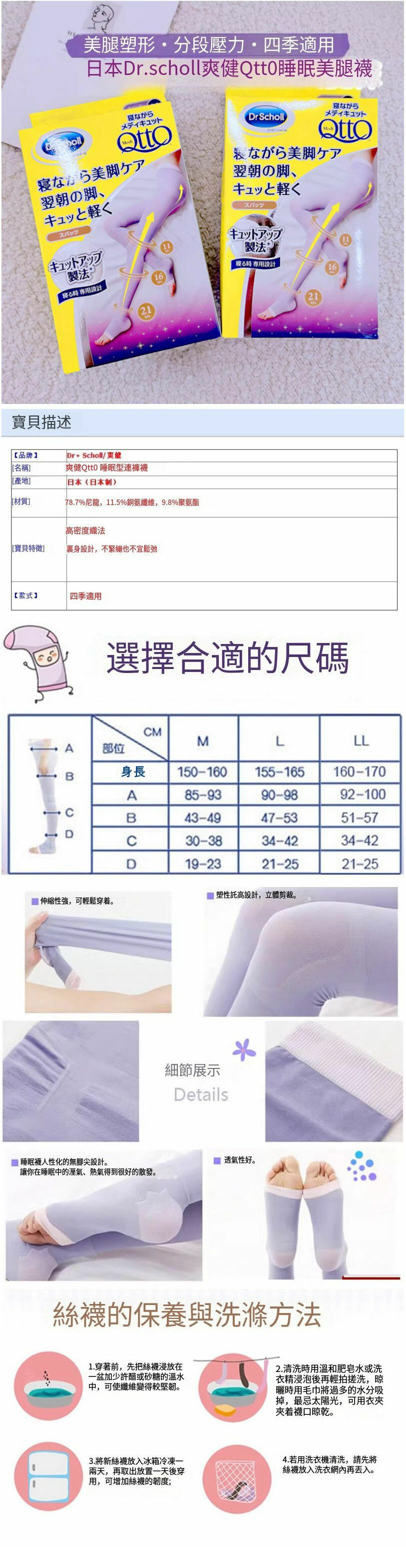 日本Dr.scholl--爽健睡眠美腿襪壓力塑形連褲襪【薰衣草連褲睡眠襪】1雙