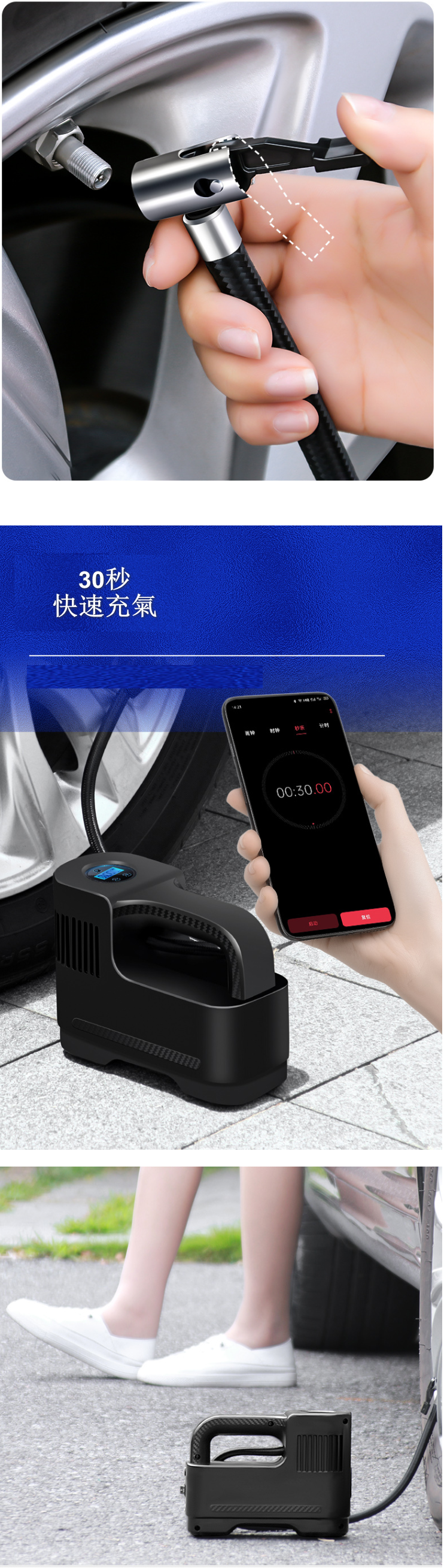 爆款【5件組合裝】汽車便攜式充氣泵(有線數顯款 1個泵+3個充氣嘴+1套補胎工具)